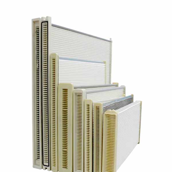 除了濾筒,近年來出現了一種新型板式濾芯,其結構特點為濾料短折寬設計,且濾料扁平狀布置于出氣孔兩側,濾料相互支撐形成過濾腔體,脈沖清灰性能好,可用在粉塵濃度較高的場合。